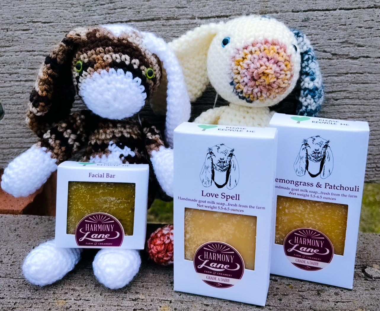 "Hello -My husband and I visited Harmony Lane after a recommendation from our daughter and her husband. We fell in love just like they did. When we visited we bought a sampling of everything. We bought the soap because of it's wonderful smell. Now I will buy the soap because of the way it feels. Hand washing these days can be a bit much and the goat soap doesn't dry my hands at all. It really leaves them feeling hydrated and an added bonus....they smell so good. Who knew? Thank you!"