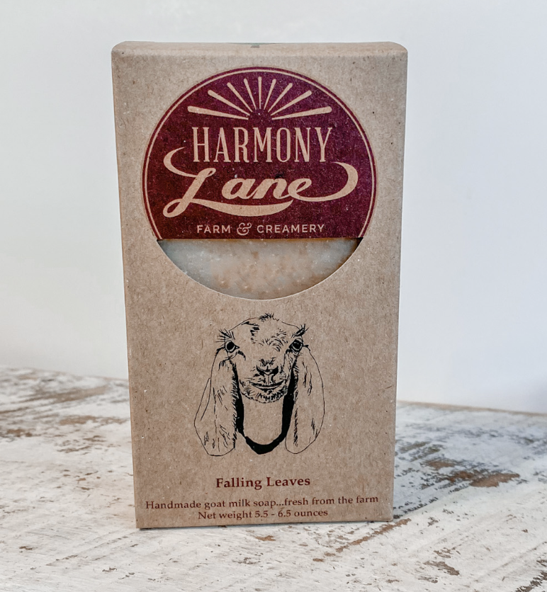 What's inside? Fresh Harmony Lane goats milk, saponified 100% organic coconut oil, organic palm oil, non GMO vegetable oil, food grade olive oil, organic avocado oil, castor oil, with fragrance oil.