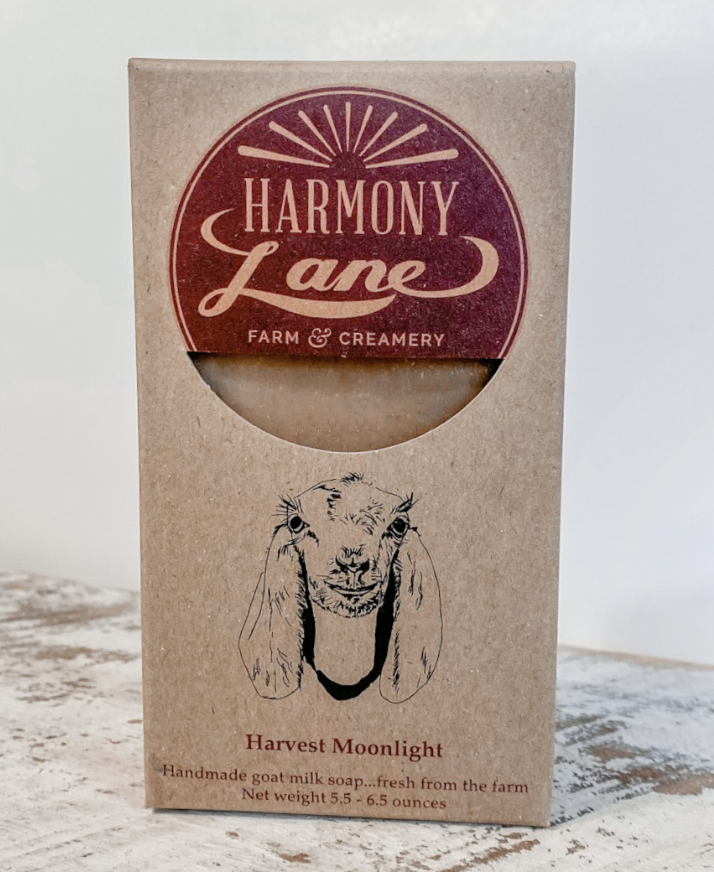 What's inside? Fresh Harmony Lane goats milk, saponified 100% organic coconut oil, organic palm oil, non GMO vegetable oil, food grade olive oil, organic avocado oil, castor oil, with fragrance oil.